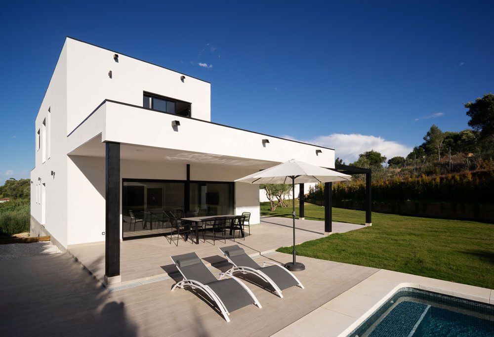 Esta elegante vivienda modular de 220 m² distribuidos en dos plantas más sótano combina líneas contemporáneas con una estética típicamente mediterránea. Su acabado exterior en SATE blanco y la pérgola negra le aportan carácter, frescura y funcionalidad. Una casa luminosa, sobria y eficiente, ideal para climas cálidos.